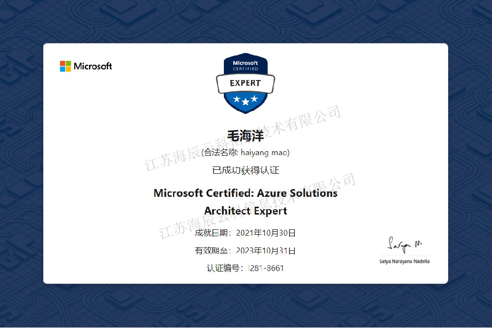 江蘇海辰云科信息技術有限公司是一家瞪羚企業(yè)、科技型中小企業(yè)、高新技術企業(yè),AAA級重合同守信用企業(yè)、企業(yè)通過ISO9001標準化管理體系認證,ITSS信息技術服務標準。江蘇海辰堅持為客戶提供數字化轉型、云計算、信息安全、IT運營、大數據、IT資管及合規(guī)等領域的解決方案,致力于為用戶提供一站式IT信息技術服務!多年的行業(yè)經驗,在銷售、培訓和技術服務工作中,公司與Microsoft,Oracle,Adobe等國際、國內知名廠家建立了密切的合作關系,使得我們能為用戶提供從基礎架構,到行業(yè)應用的IT解決方案;提供從軟硬件采購,到后期技術支持;以及提供從公有云到私有云以及混合云的云服務和解決方案。成立至